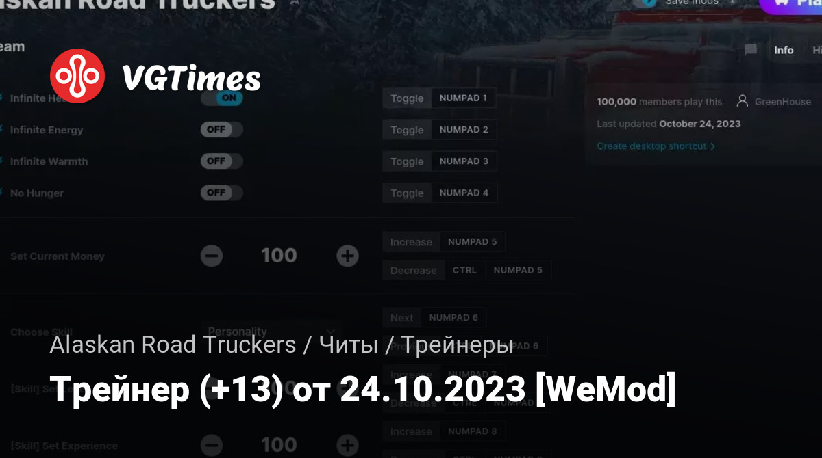 Для использования трейнера необходима установка системы WeMod (требуется онлайн подключение).