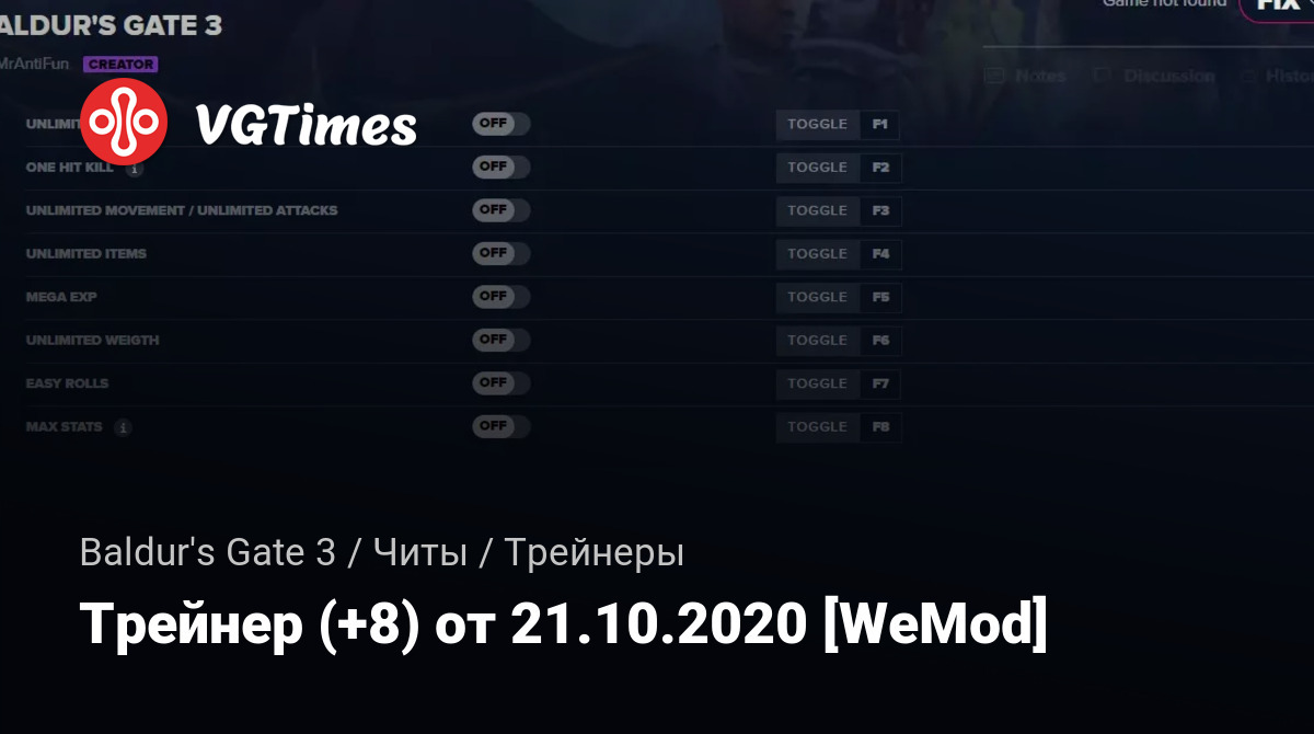 • Baldur's Gate 3 — Трейнер (+8) от 21.10.2020 [WeMod]