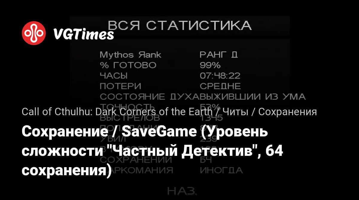 Сохранение / SaveGame (Уровень сложности "Частный Детектив", 64 сохранения)