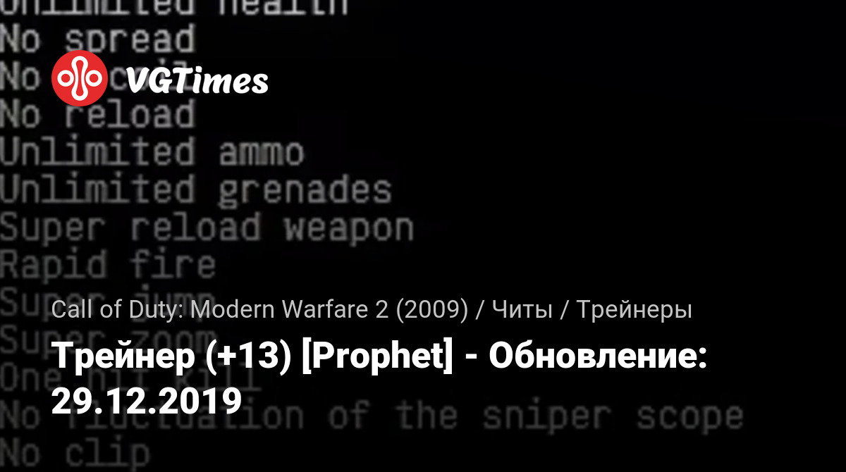 Oyunlar Call of Duty: Modern Warfare 2 (2009) Dosyalar Eğitmenler Трейнер (+13) [Prophet] - Обновление: 29.12.2019