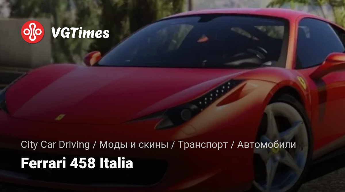 Ferrari 458 Italia версия 1.0 для City Car Driving (v1.5.9 — 1.5.9.2).