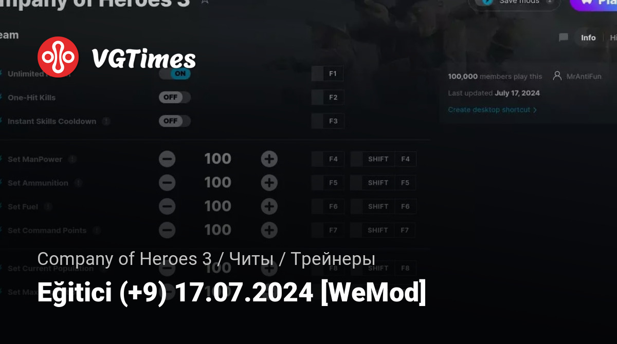 • Company of Heroes 3 — Eğitici (+9) 17.07.2024 [WeMod]