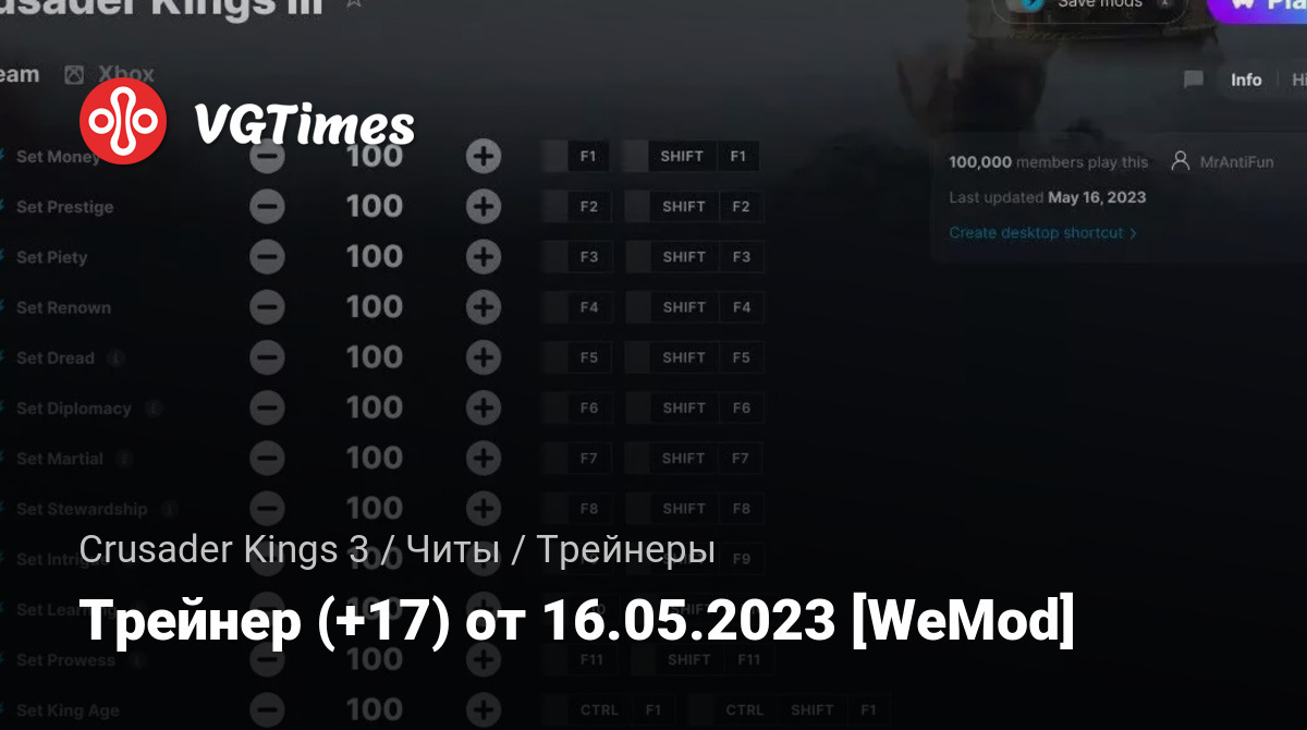 Трейнер (+17) от 16.05.2023 [WeMod]