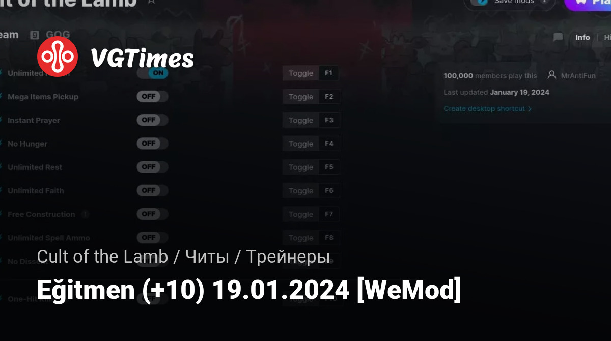 • Cult of the Lamb — Eğitmen (+10) 19.01.2024 [WeMod]
