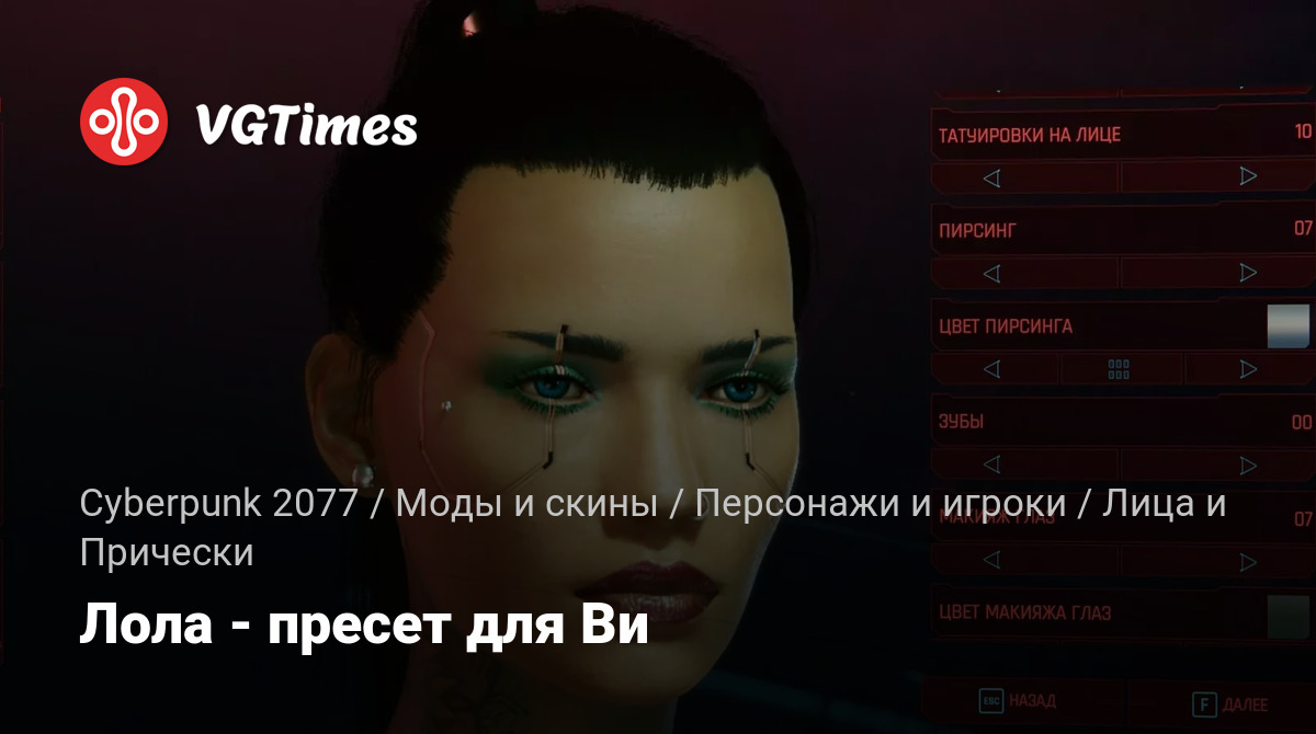 Это пресет для женского персонажа Ви. Для установки скачайте архив и следуйте инструкциям.