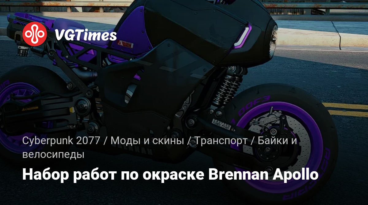 В пак входят различные варианты окраски мотоцикла Brennan Apollo, представленного моделями V2 и V3 из модификации Road. Также перекрашены / удалены наклейки боковин покрышек (в зависимости от варианта покраски). Кроме того, с двигателя модели V3 снято что-то вроде «крышки цилиндров».
