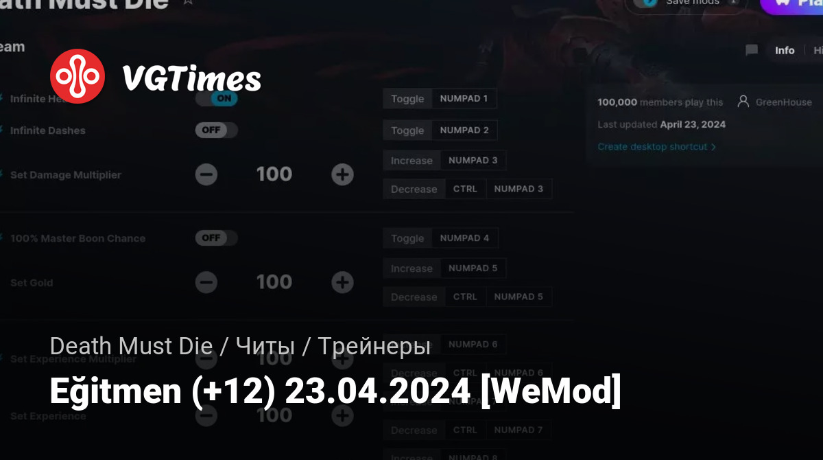 Для использования трейнера необходима установка системы WeMod (требуется онлайн подключение).