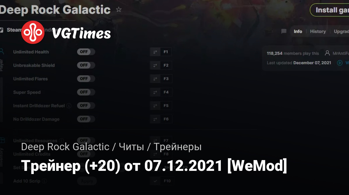 Трейнер (+20) от 07.12.2021 [WeMod]