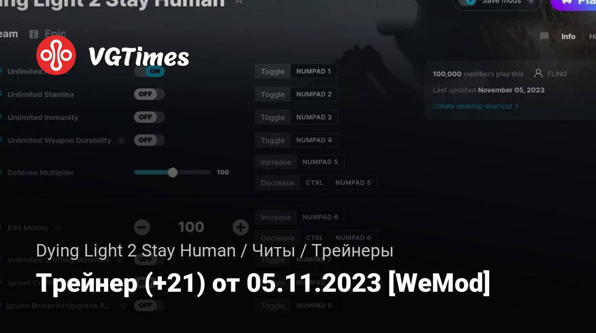 • Dying Light 2 Stay Human — Трейнер (+21) от 05.11.2023 [WeMod]
