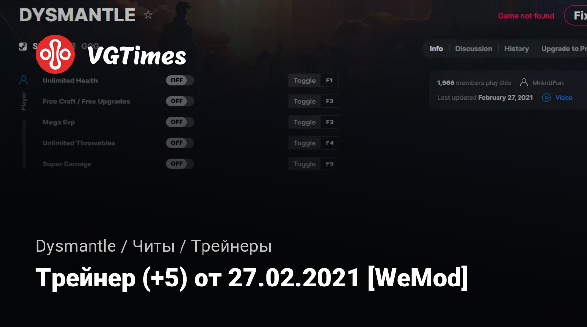 Для использования трейнера необходима установка системы WeMod (требуется онлайн подключение).