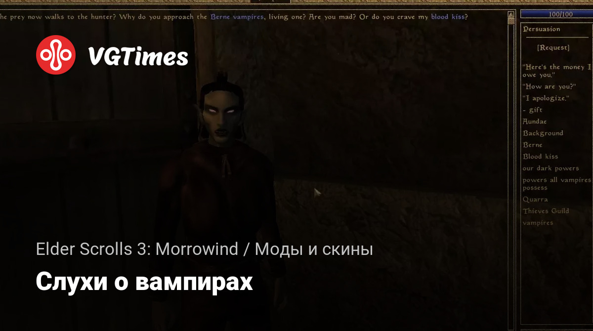 Чтобы узнать что-то о возможной активности вампиров в области, просто используйте обычную тему разговора «вампиры». Обычно это разблокируется, когда какой-то NPC цитирует вампиров в своем диалоге, обычно когда речь идет о последних слухах или маленьких секретах.