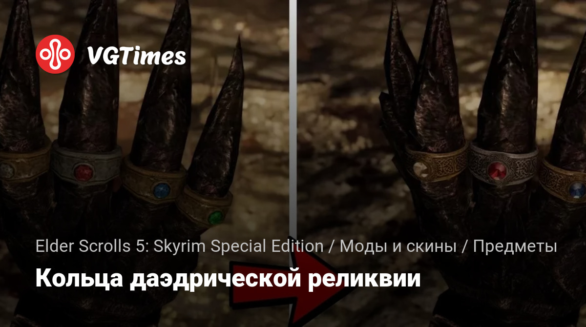 Этот мод заменяет оригинальные низкополигональные кольца на металлической перчатке Daedric Relic кольцами от Gemling Queen Jewelry. Нет esp. Плюс дополнительная подсветка ENB для светящегося символа забвения на ладони.