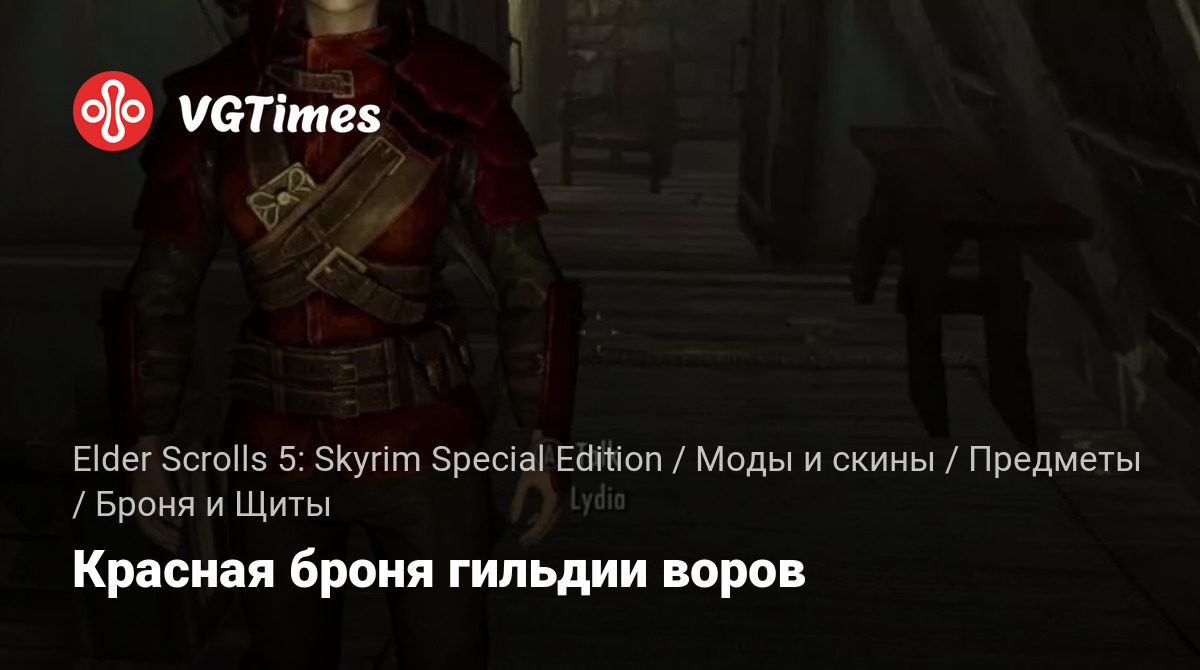Красный вариант брони Гильдии воров. Это НЕ заменитель. В игру добавлены 4 дополнительных элемента легкой брони, а также улучшенный кинжал вора.