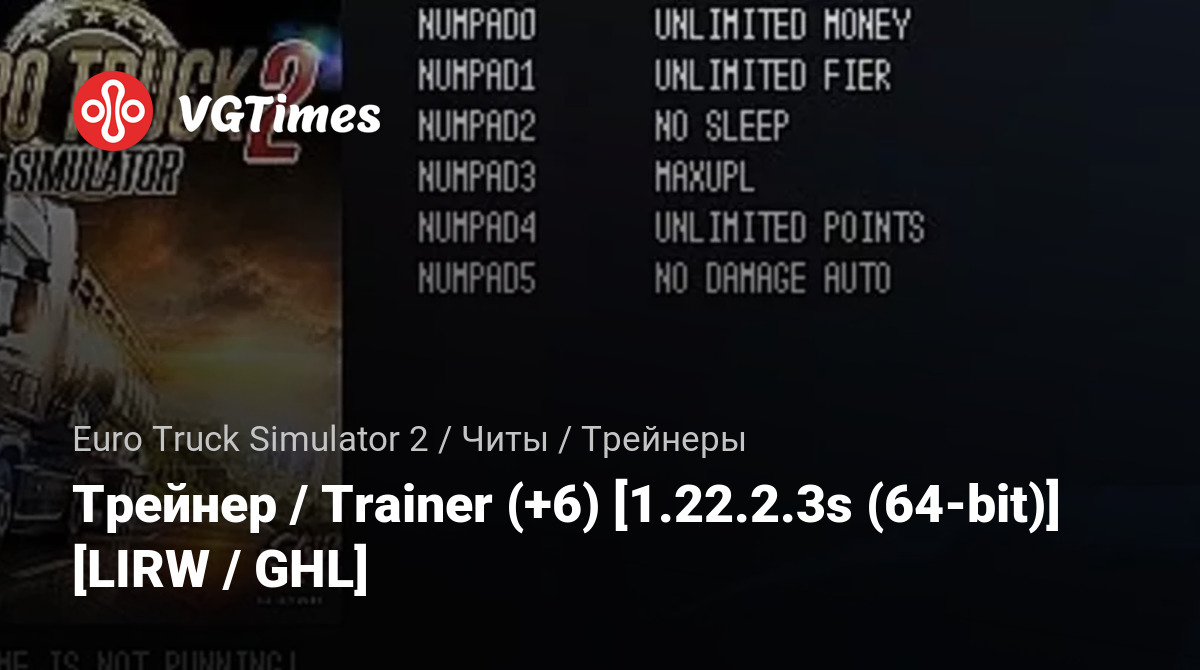 • Euro Truck Simulator 2 — Трейнер / Trainer (+6) [1.22.2.3s (64-bit)] [LIRW / GHL]