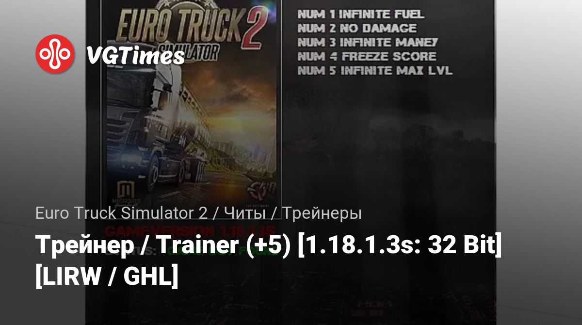 Oyunlar Euro Truck Simulator 2 Dosyalar Eğitmenler Трейнер / Trainer (+5) [1.18.1.3s: 32 Bit] [LIRW / GHL]
