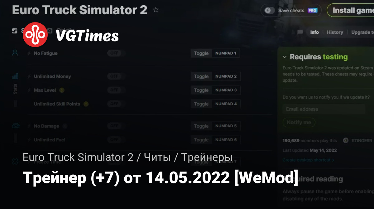 • Euro Truck Simulator 2 — Трейнер (+7) от 14.05.2022 [WeMod]