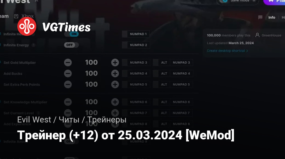Трейнер (+12) от 25.03.2024 [WeMod]