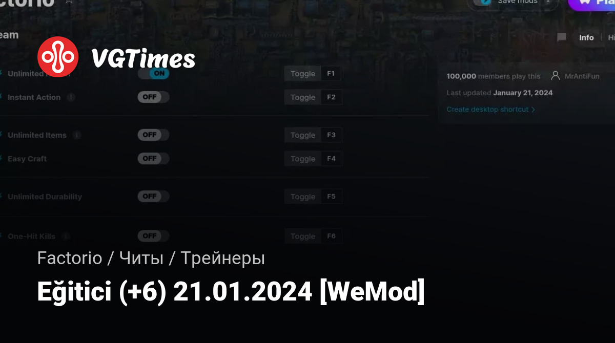 Для использования трейнера необходима установка системы WeMod (требуется онлайн подключение).