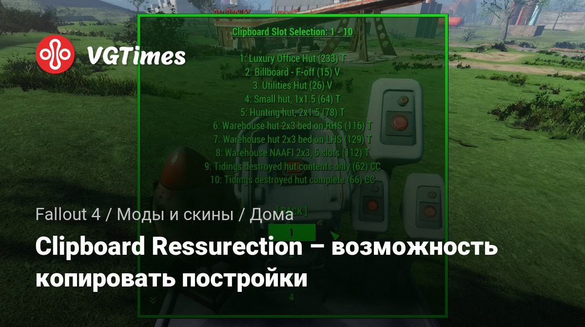 Мод позволяет копировать целые постройки и вставлять одной простой кнопкой. Требуется F4SE.