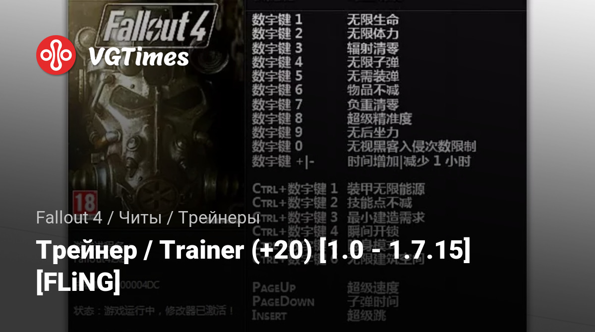 • Fallout 4 — Трейнер / Trainer (+20) [1.0 - 1.7.15] [FLiNG]