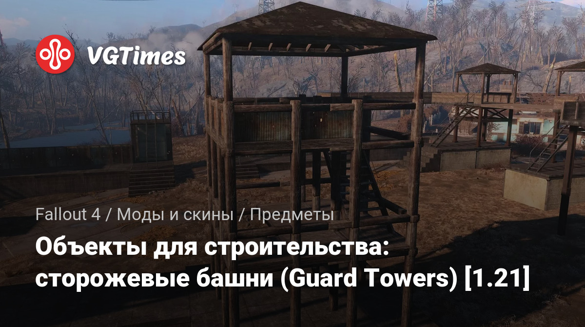 Guard Towers добавляет в Fallout 4 множество новых построек, связанных с строительством в поселениях защитных построек. Включает несколько вариантов стен и ворот с высокими башнями, с которых можно отстреливать группы нападающих бандитов.