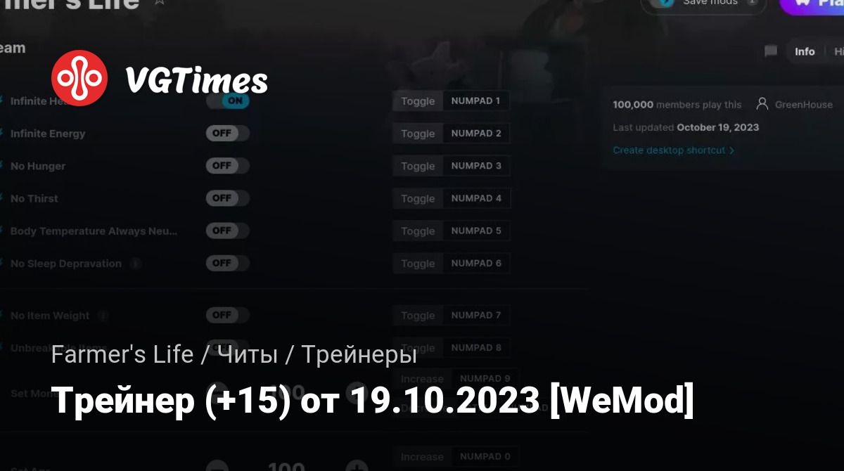 Для использования трейнера необходима установка системы WeMod (требуется онлайн подключение).