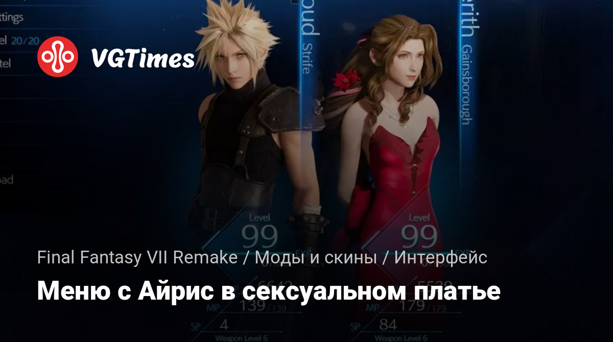 Иконки меню отображают Айрис в красном сексуальном платье. Установите в папку mods. Epic Games/FFVIIRemakeIntergrade/End/Content/Paks/~mods.
