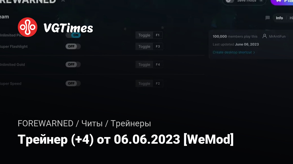 • FOREWARNED — Трейнер (+4) от 06.06.2023 [WeMod]