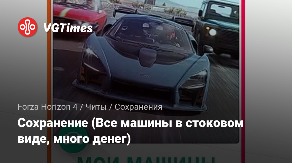 Сохранение (Все машины в стоковом виде, много денег)
