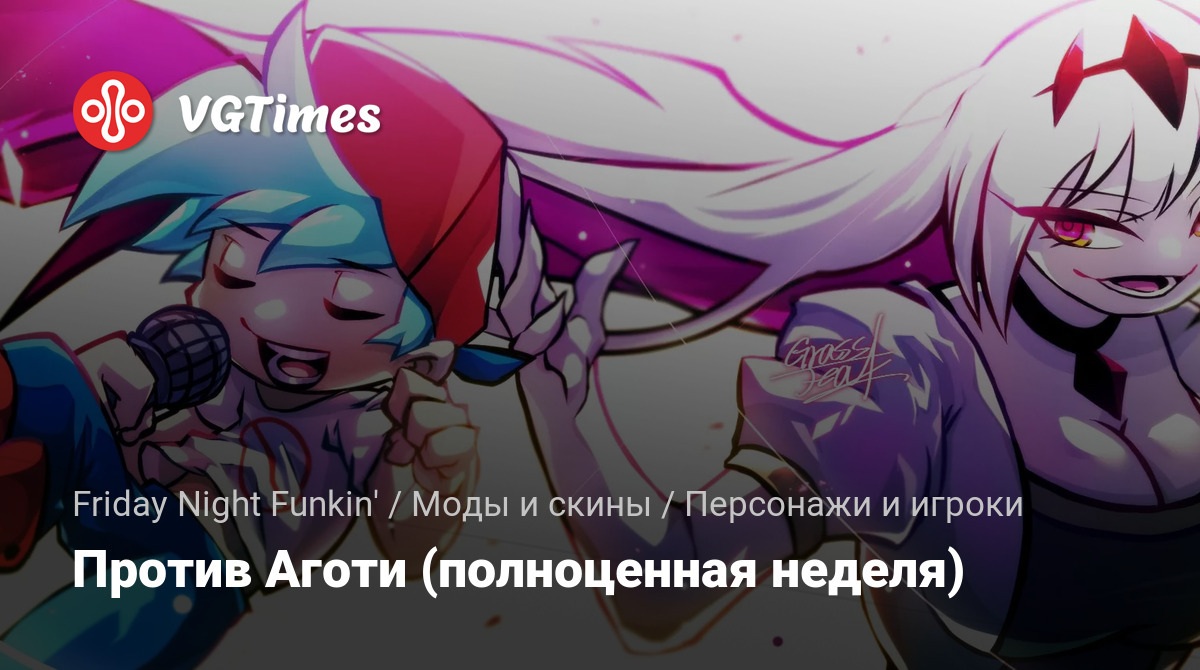 Аготи — пропавший певец. Парень встретит его в странном переулке. Теперь им предстоит батл. Мод добавляет новую полноценную неделю, три уровня сложности, анимации, ранги, бесконечный режим и множество других мелких деталей. История Аготи считается одной из самых интересных с визуальной стороны, так как полностью изменены фоны арен и меню.