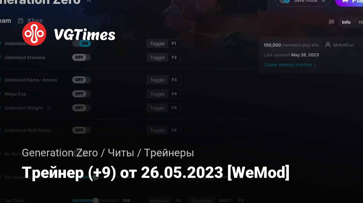 • Generation Zero — Трейнер (+9) от 26.05.2023 [WeMod]
