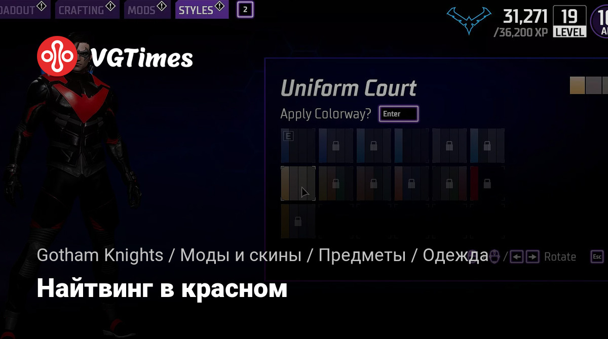Этот мод делает логотип на костюме Найтвинга красным. Установка по этому пути Gotham Knights/Mercury/Content/Paks/mods.
