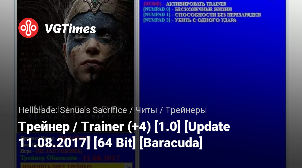 Oyunlar Hellblade: Senua's Sacrifice Dosyalar Eğitmenler Трейнер / Trainer (+4) [1.0] [Update 11.08.2017] [64 Bit] [Baracuda]