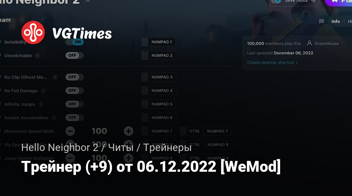 Трейнер (+9) от 06.12.2022 [WeMod]