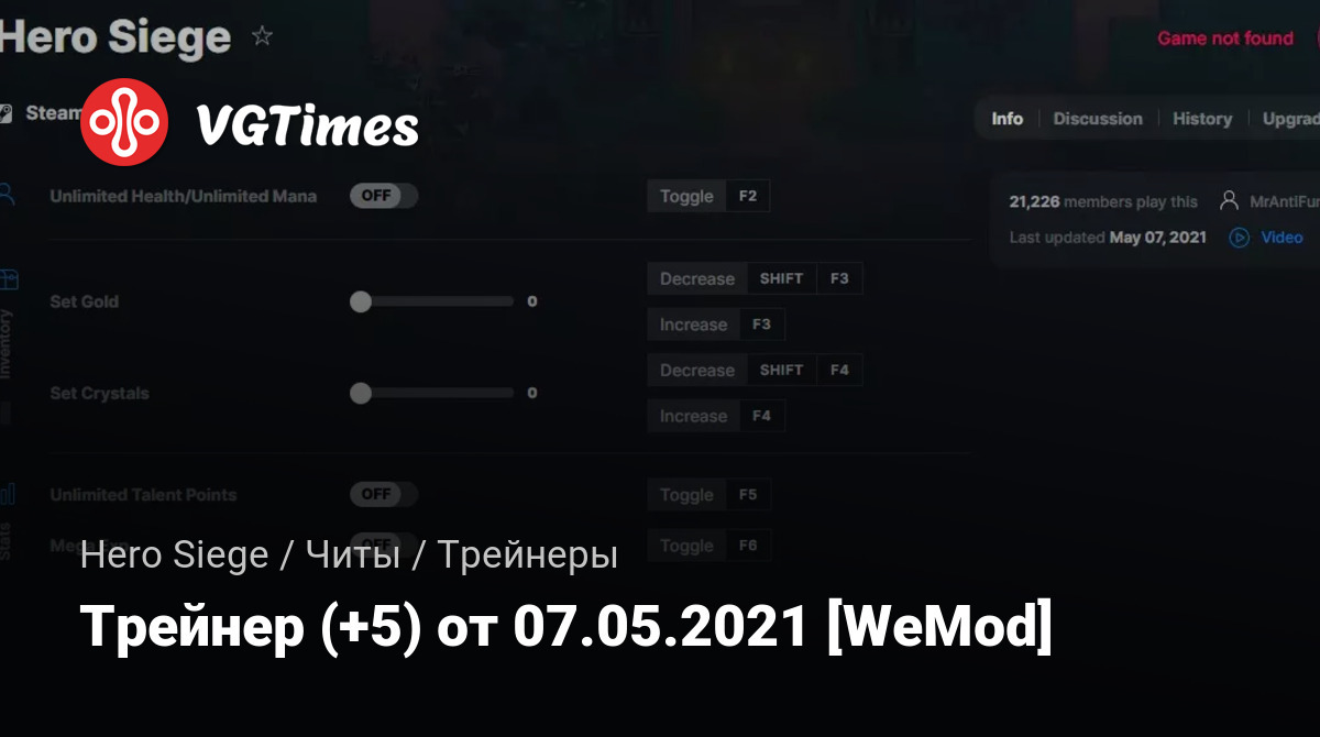 Для использования трейнера необходима установка системы WeMod (требуется онлайн подключение).