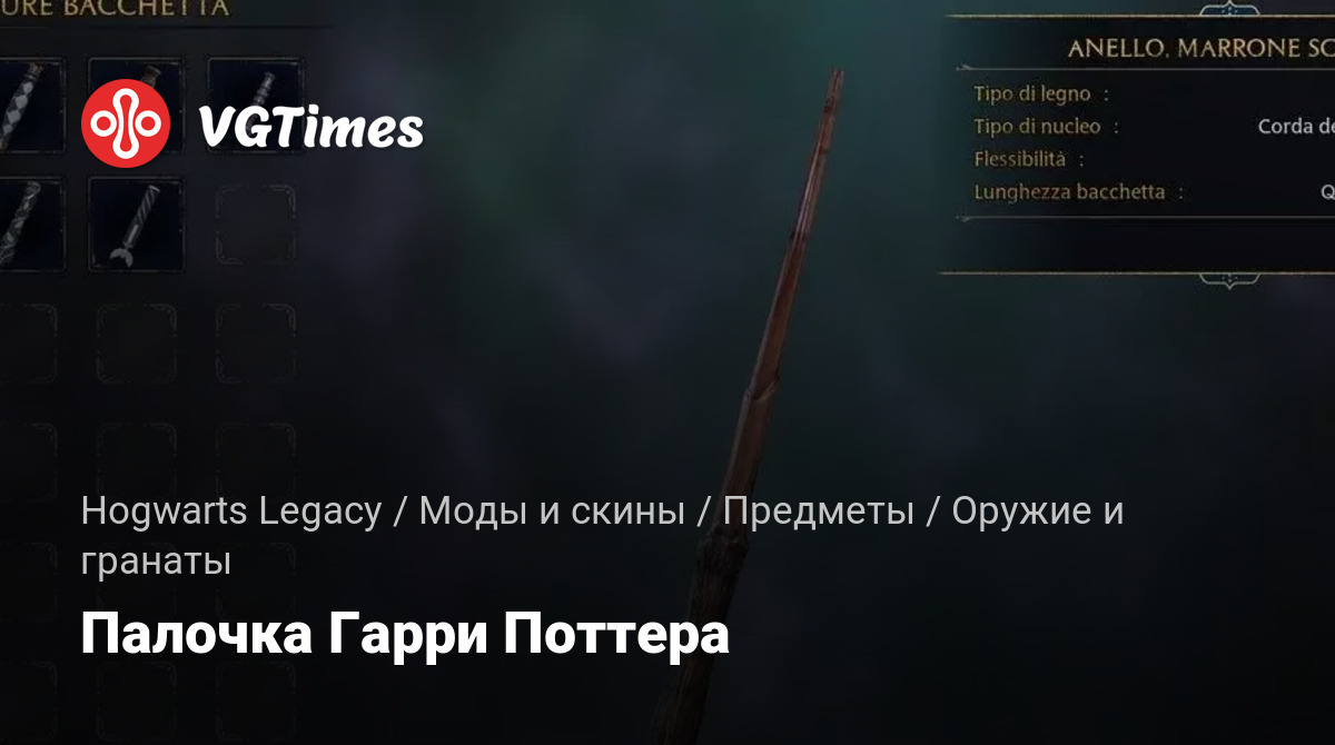 Заменяет стандартную палочку на палочку легендарного Гарри Поттера.