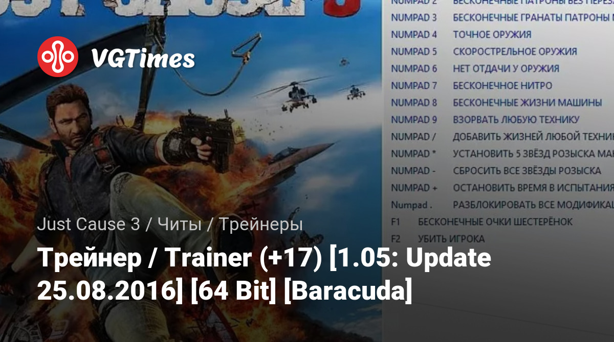 У КОГО [TRAINER] НЕ РАБОТАЕТ, УБЕДИТЕСЬ ЧТО ФАЙЛ ЗАПУСКА ИГРЫ, КОТОРЫЙ ЛЕЖИТ У ВАС В ГЛАВНОМ КАТАЛОГЕ УСТАНОВЛЕННОЙ ИГРЫ, НАЗЫВАЕТСЯ JustCause3 ЕСЛИ НЕТ ТО ПЕРЕИМЕНУЙТЕ ЕГО НА JustCause3