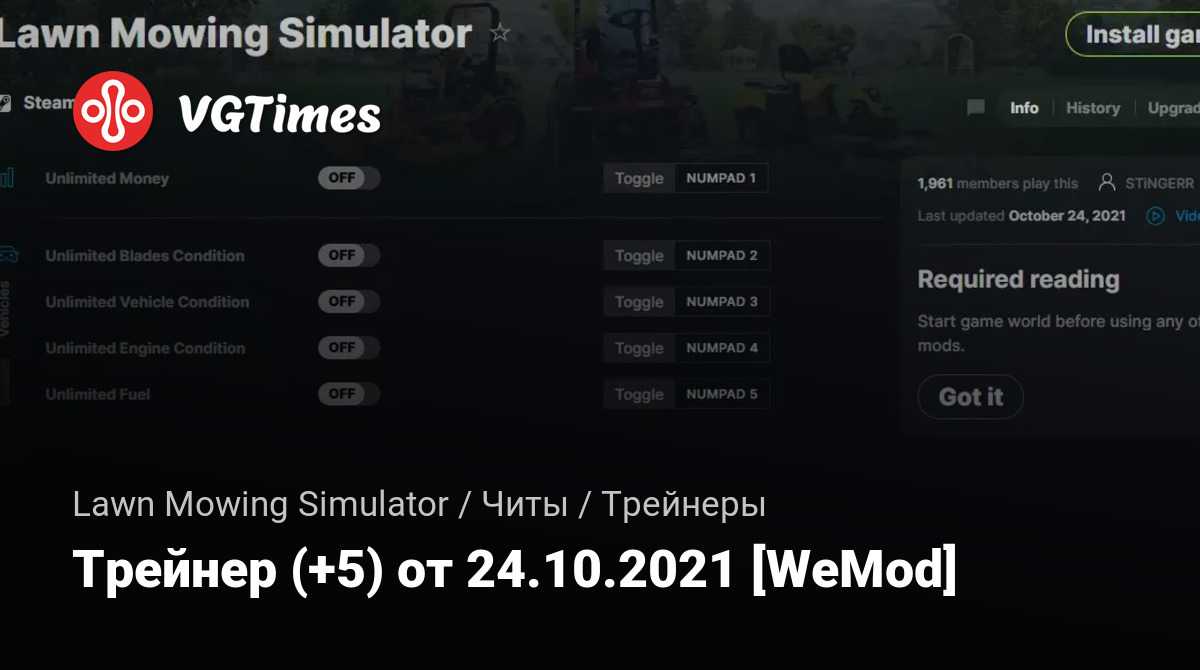 • Lawn Mowing Simulator — Трейнер (+5) от 24.10.2021 [WeMod]