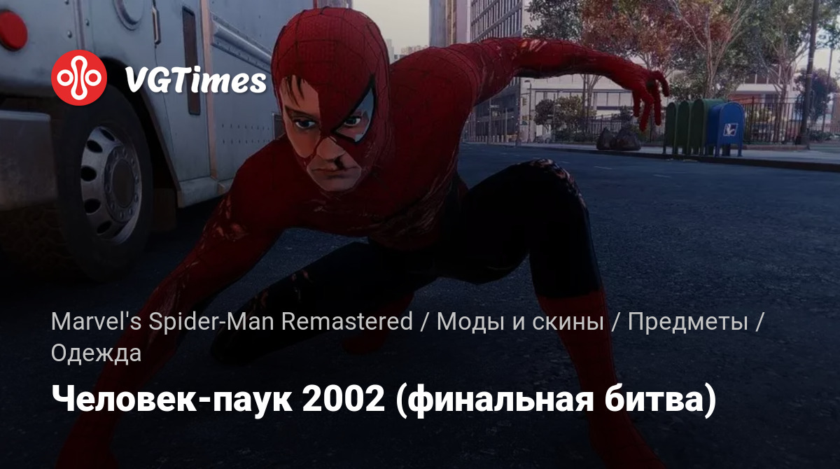 Этот мод заменяет костюм Алого паука 2 на костюм Человека-паука из финальной битвы в фильме 2002 года.