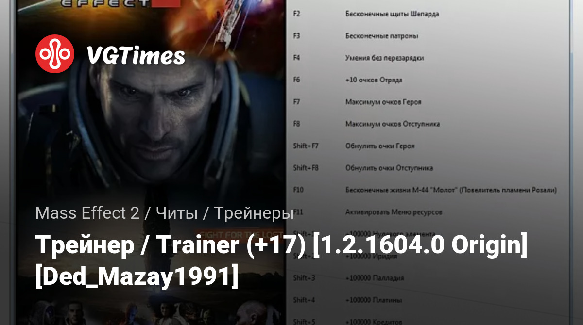 Oyunlar Mass Effect 2 Dosyalar Eğitmenler Трейнер / Trainer (+17) [1.2.1604.0 Origin] [Ded_Mazay1991]