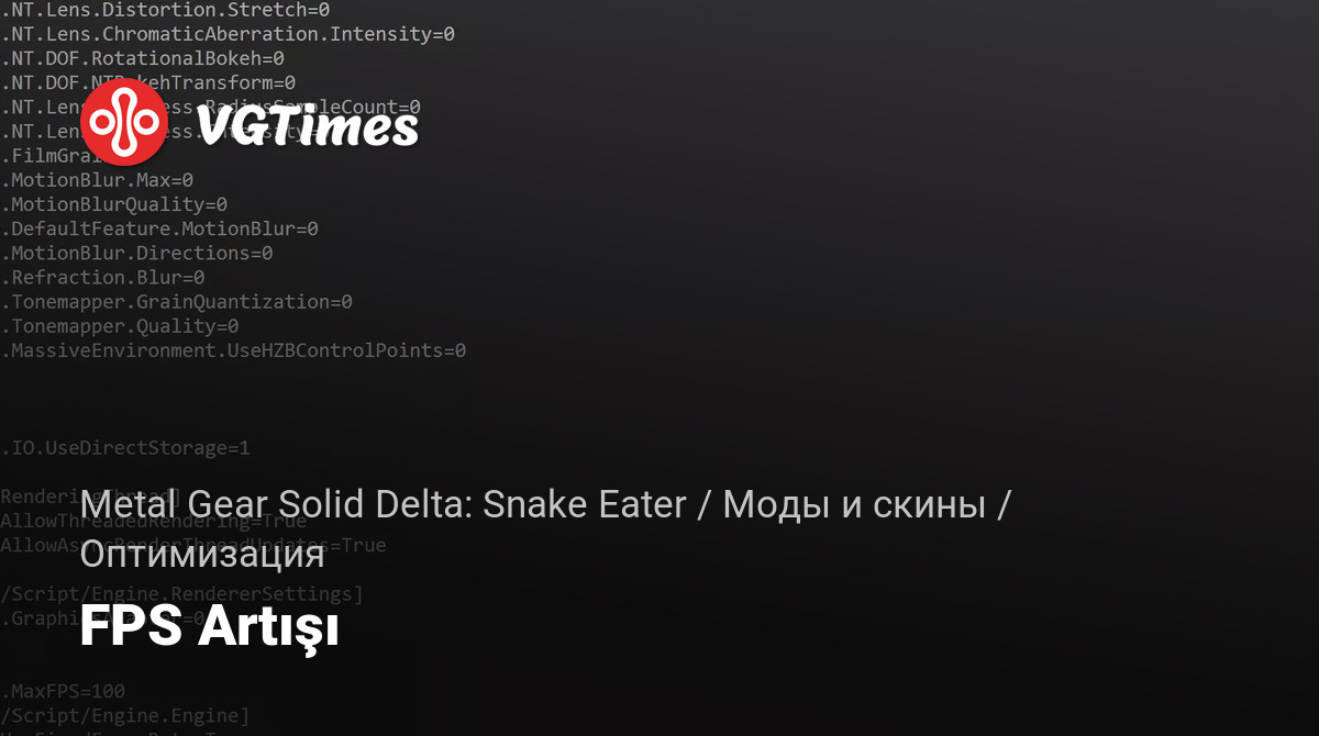 - Поместить файл engine.ini в %LOCALAPPDATA%\MGSDelta\Saved\Config\Windows\.
