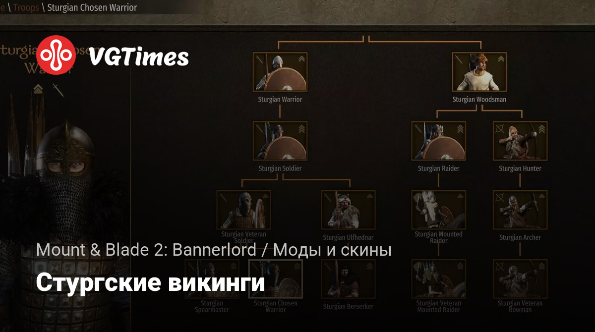 Заменяет экипировку большинства стургских войск, чтобы они выглядели как настоящие викинги. У каждого юнита будет 2-3 варианта доспехов и шлемов. Так же изменено некоторое оружие, но баланс сил не меняется.