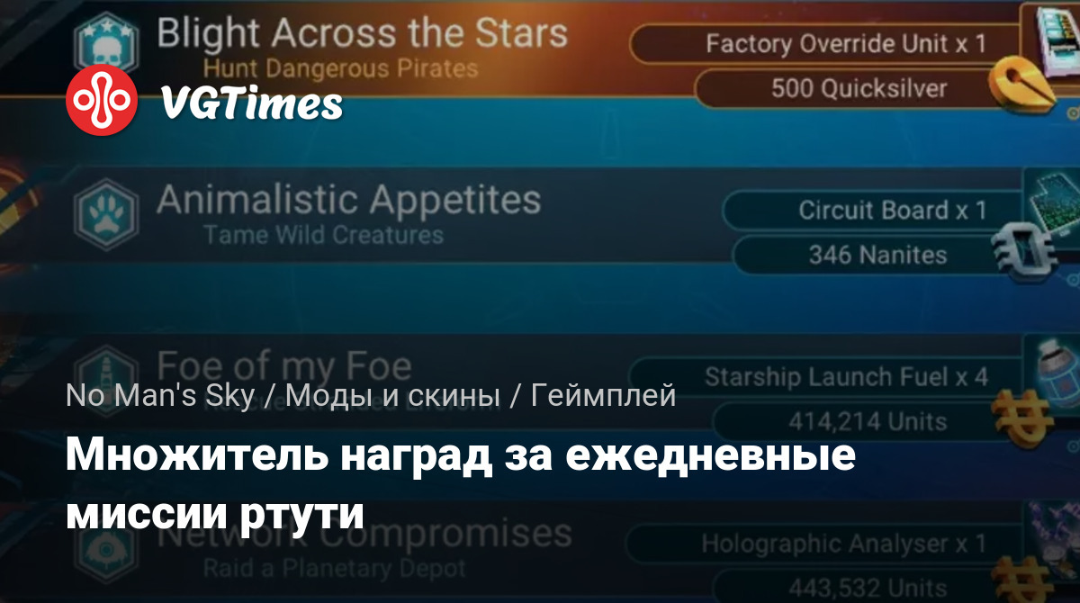 • No Man's Sky — Множитель наград за ежедневные миссии ртути