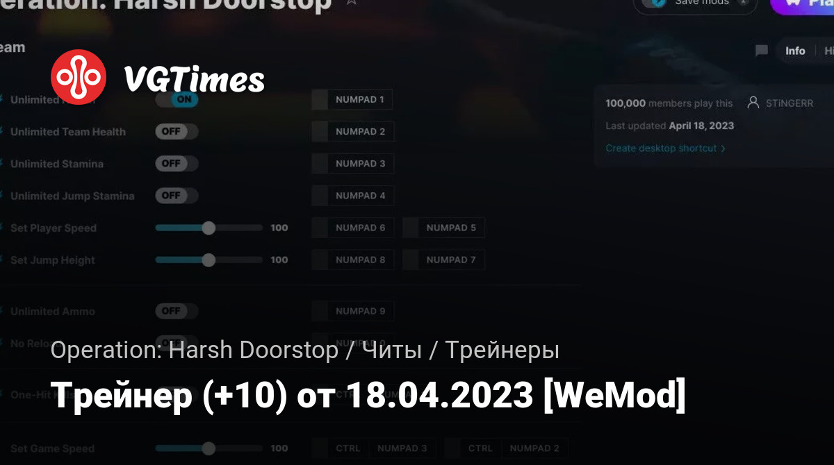 Для использования трейнера необходима установка системы WeMod (требуется онлайн подключение).