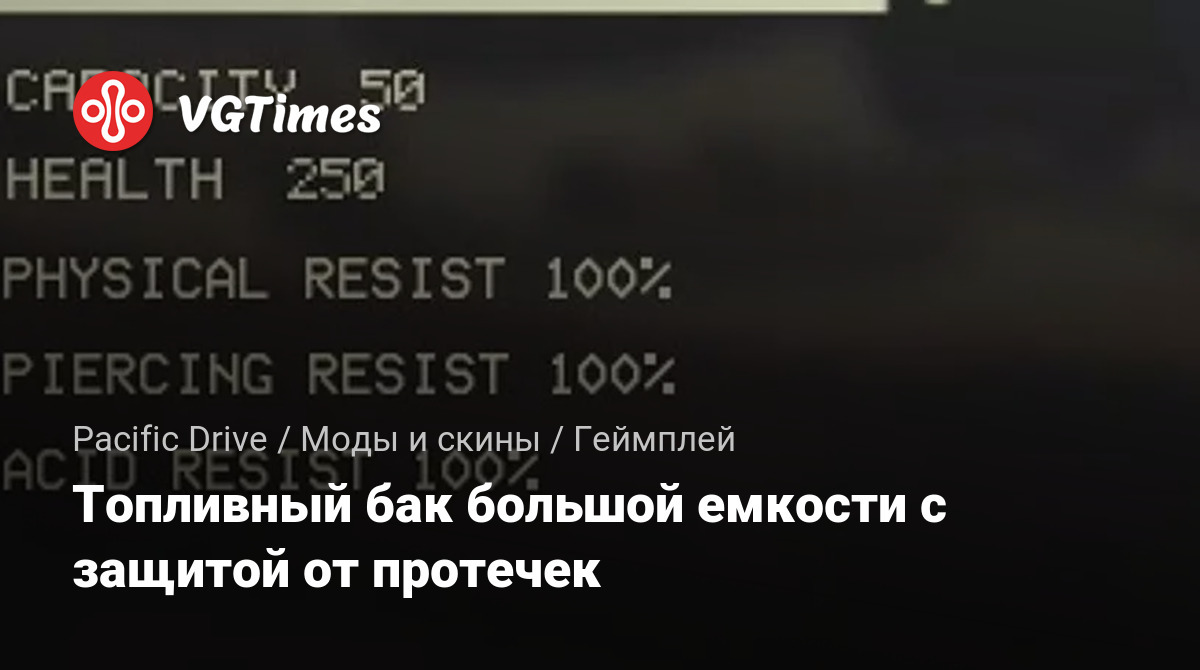 Увеличивает максимальную емкость топливного бака с защитой от протечек до 50 (соответствует расширенному топливному баку).