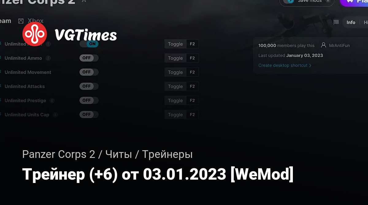 Для использования трейнера необходима установка системы WeMod (требуется онлайн подключение).