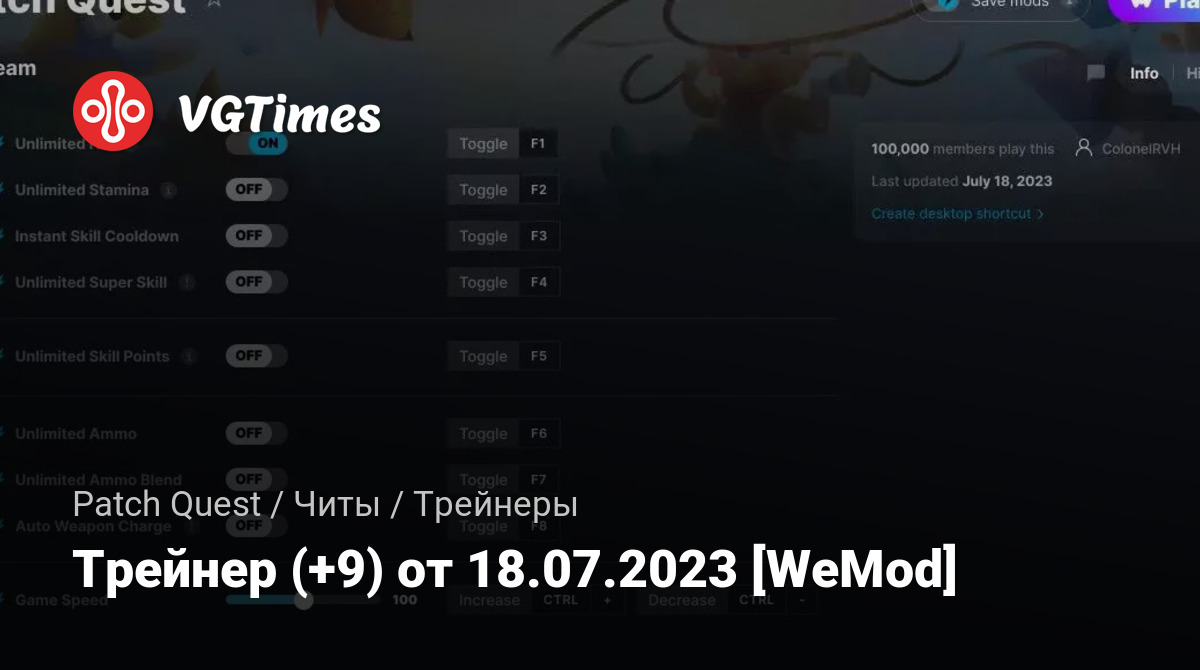 Трейнер (+9) от 18.07.2023 [WeMod]
