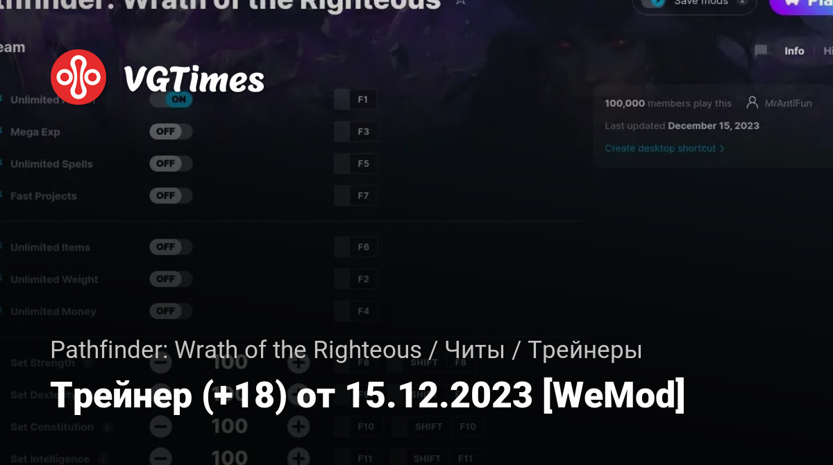 Трейнер (+18) от 15.12.2023 [WeMod]