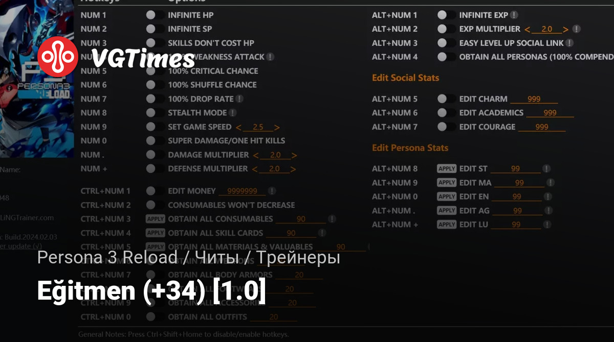 - Alt+Numpad 4 – получить все персоны (100% компендиум).