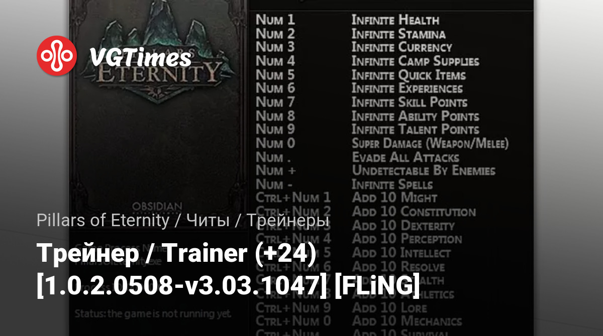 Oyunlar Pillars of Eternity Dosyalar Eğitmenler Трейнер / Trainer (+24) [1.0.2.0508-v3.03.1047] [FLiNG]